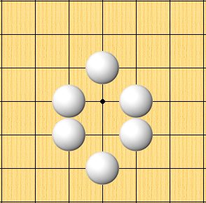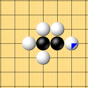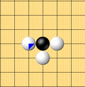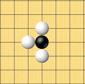<그림 6>처럼 백돌이 세곳을 모두 가로막는다면 흑 한점은 죽게 됩니다.