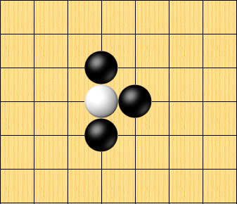 바둑판 위에서는 내 돌의 좌,우,상,하가 모두 다 상대방의 돌로 막히게 되면 죽게 됩니다.