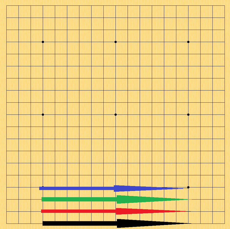 바둑판을 대하는 위치에 따라 각각 1선, 2선, 3선, 4선이라고 부릅니다.