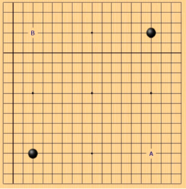 3점은 상대방이 상수인 경우 A지점에 돌을 하나 더 두어서
